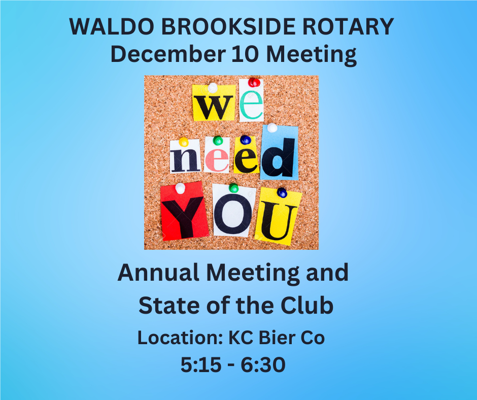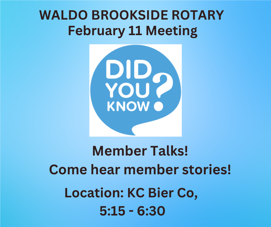 Waldo Brookside Rotary Club is a group of service-minded folks, united in our efforts to make our community and the world a better place.