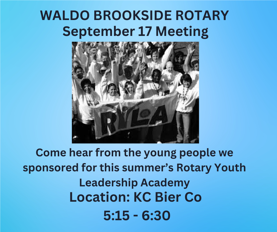 On Wednesday, September 17 we will hear from Kennaiah Declouet and Aspen Piggie, two of the young people our club sponsored to attend the Summer 2025 Rotary Youth Leadership Academy. Come hear about their experiences and bring your questions!